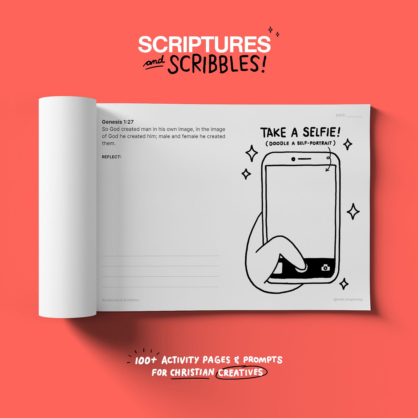 Scriptures & Scribbles is a creative journaling companion for Christian creatives who want to process their journey with God through Scripture, reflection, and art. With 100+ thoughtfully designed activity pages, it gives you space to slow down, listen, and notice where God is leading you.